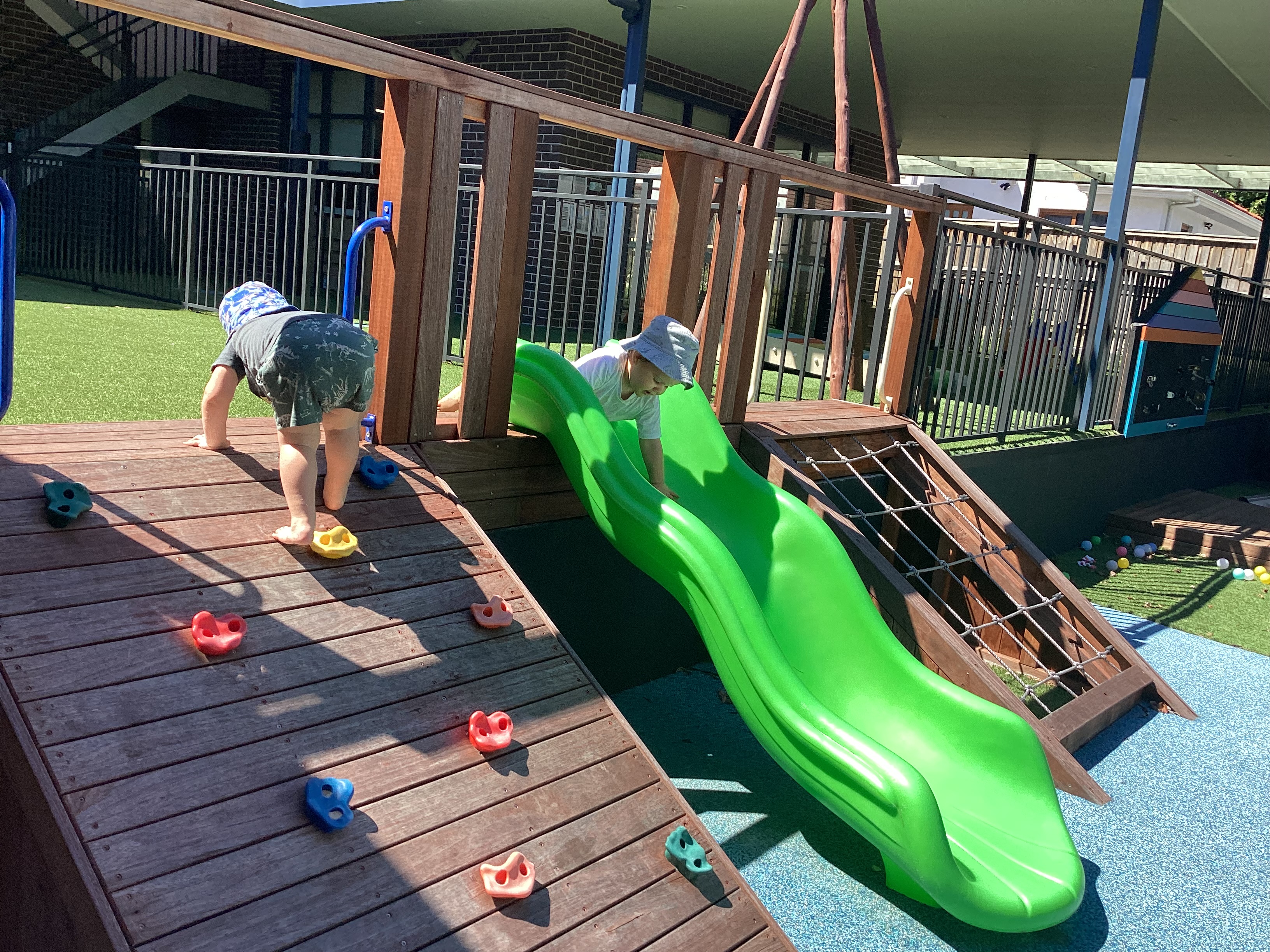 Building gross motor skills and confidence in a safe outdoor setting.